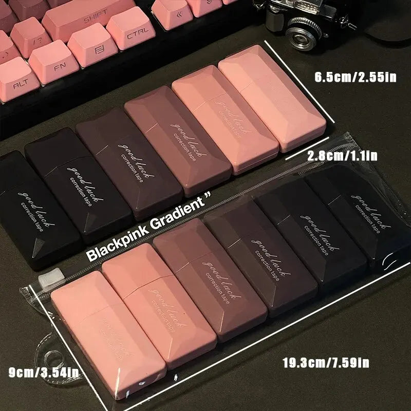 plus 6PC Black Powder Correction Tape Set Simple and Creative Gradient Correction Tape Smooth and Silent Correction Tape for Students