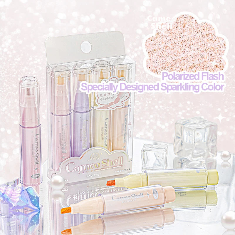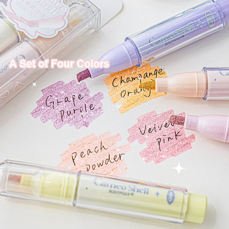 4PC Clear and Transparent Color Sparkling Girl Heart Fritillaria Fluorescent Pen DIY Handbook Color Pen Fluorescent Marking Pen