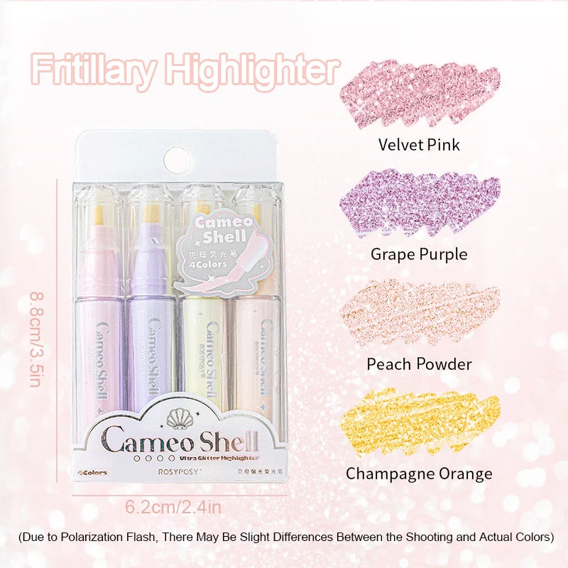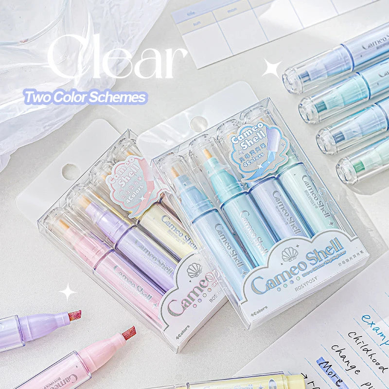 plus 4PC Clear and Transparent Color Sparkling Girl Heart Fritillaria Fluorescent Pen DIY Handbook Color Pen Fluorescent Marking Pen