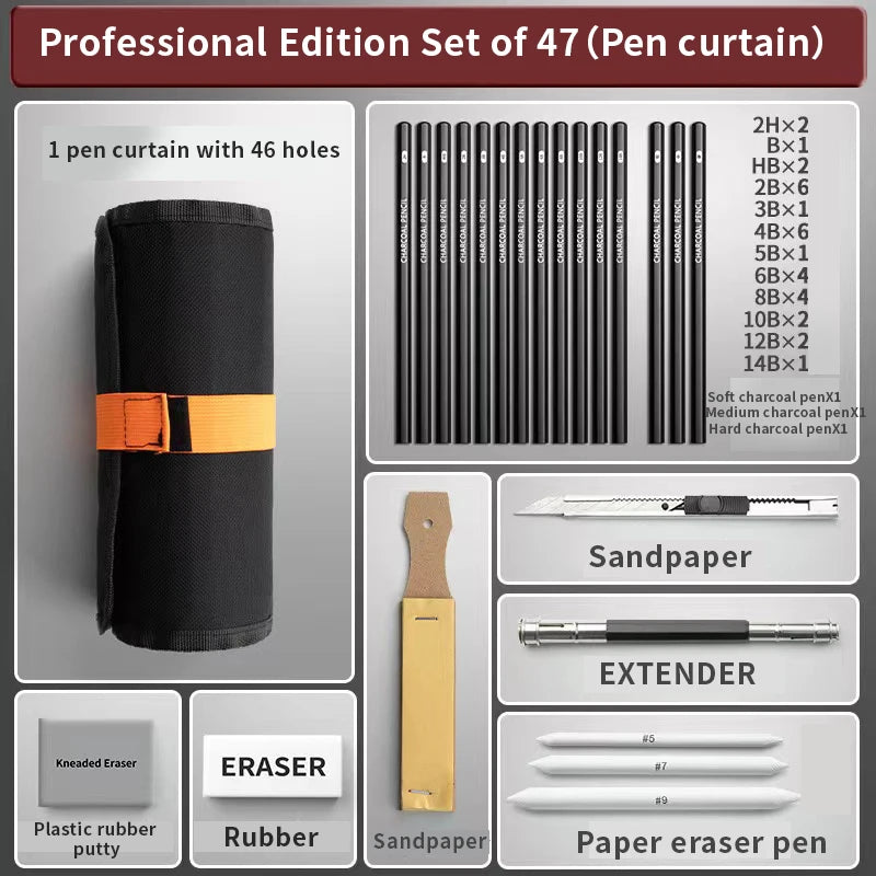plus Sketching Pen Set Drawing Pen Sketching Pencil Student Drawing Art Drawing Brush HB Pen Curtain Set Box