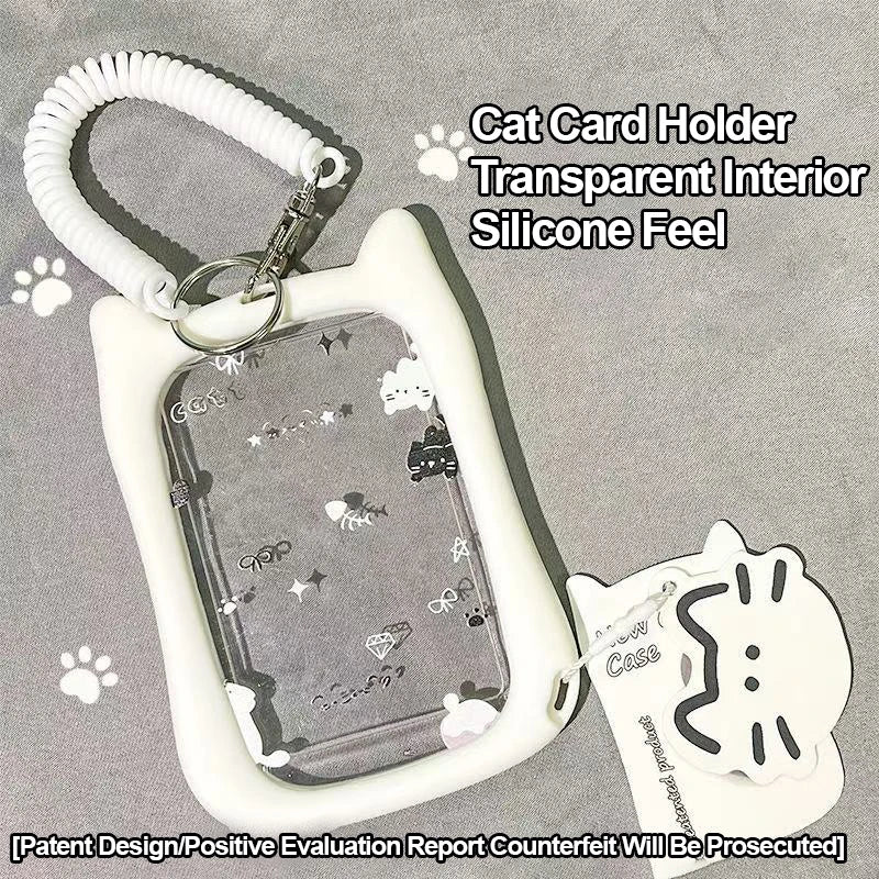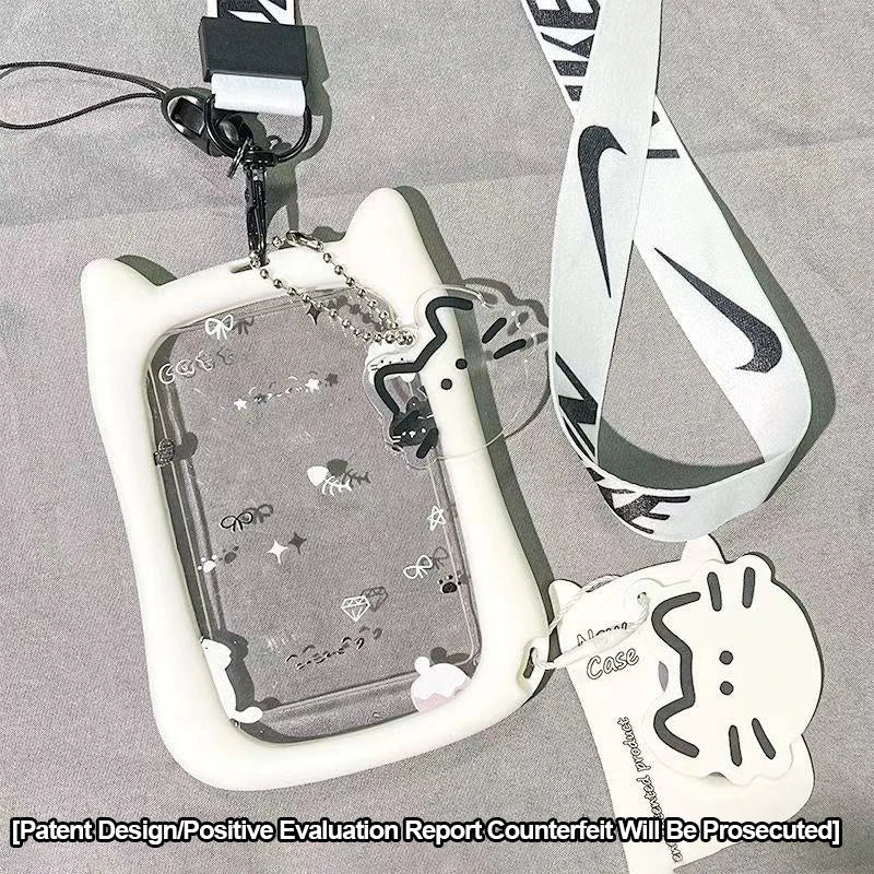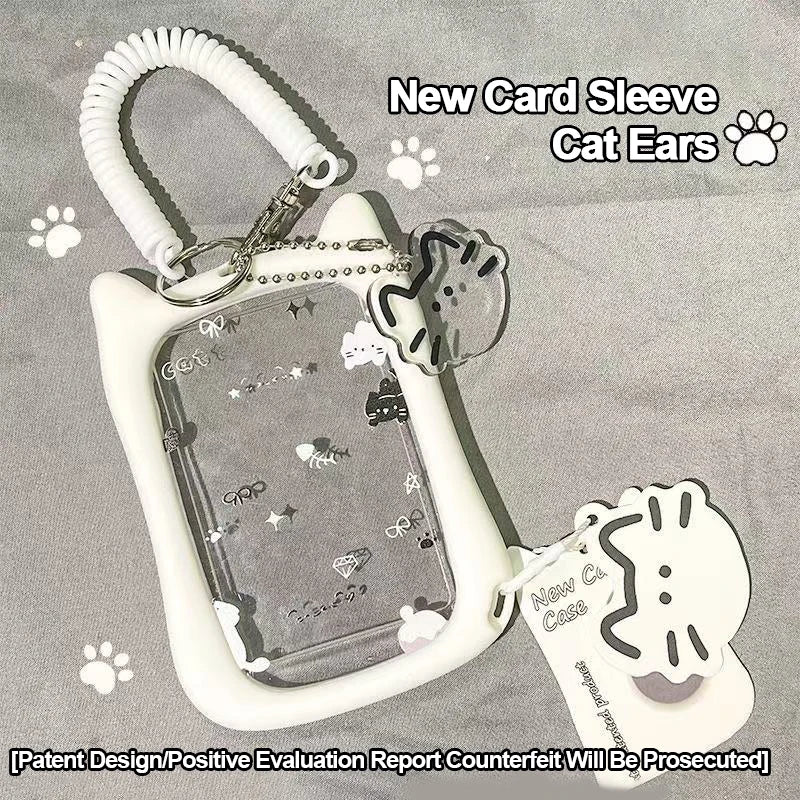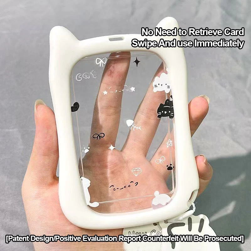 Transparent Cat Ear Card Holder Student Campus Card Meal Card Bus Subway Hanging Rope Campus ID Protection Cover