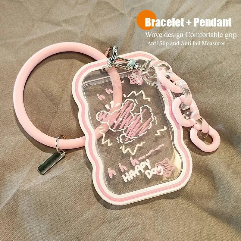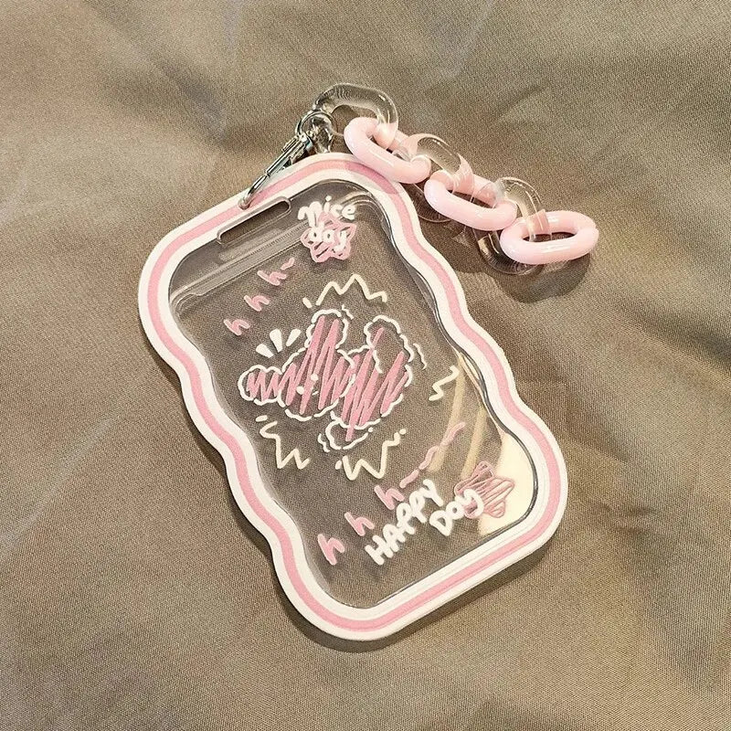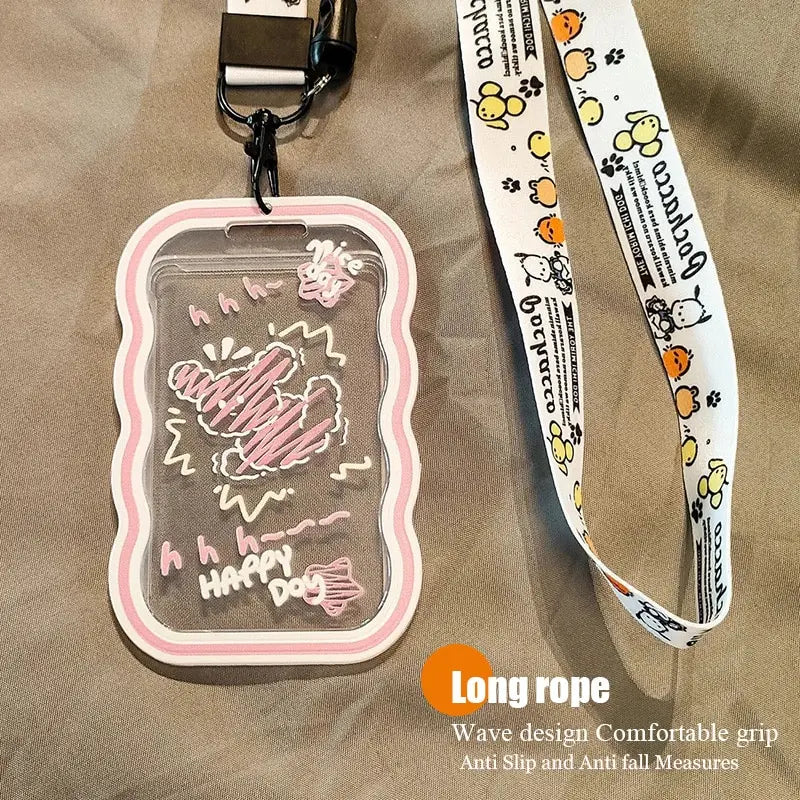 1PC Cute ID Card Meal Card Access Control ID Card Acrylic Card Holder With Hanging Rope Campus Card Bus Card Student Work ID Car
