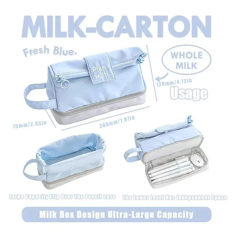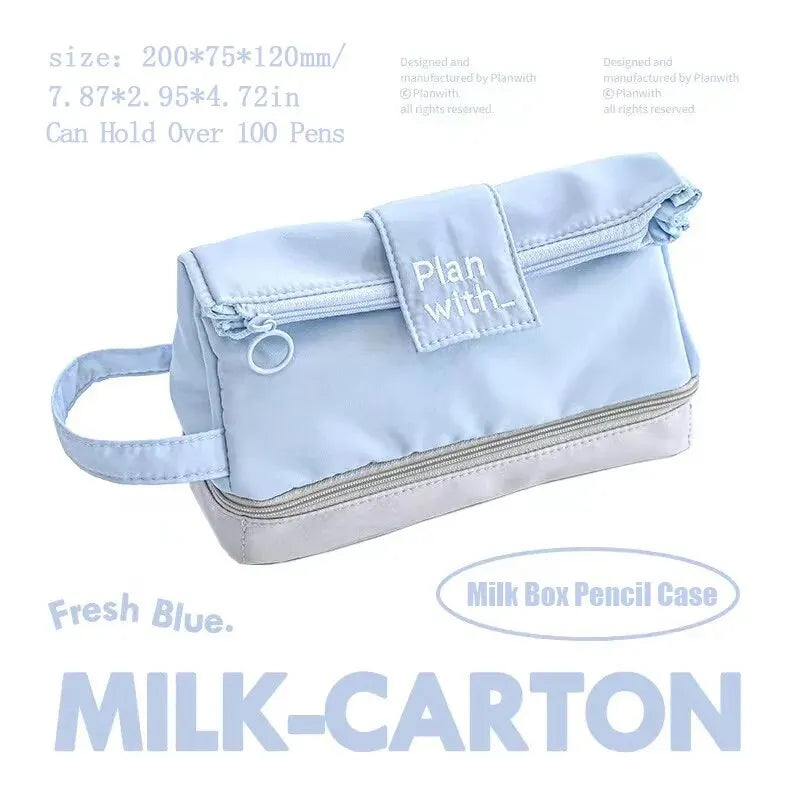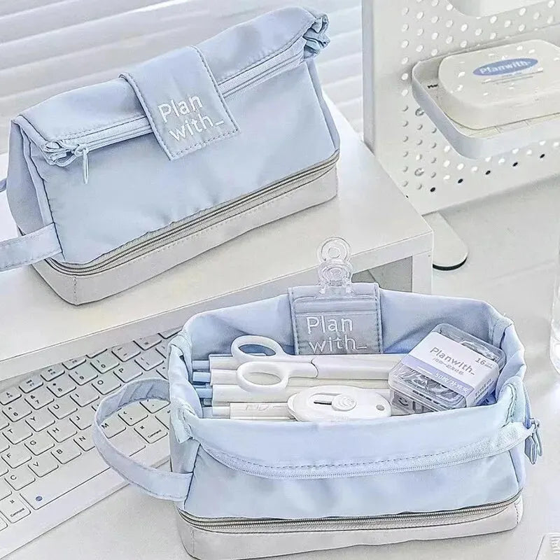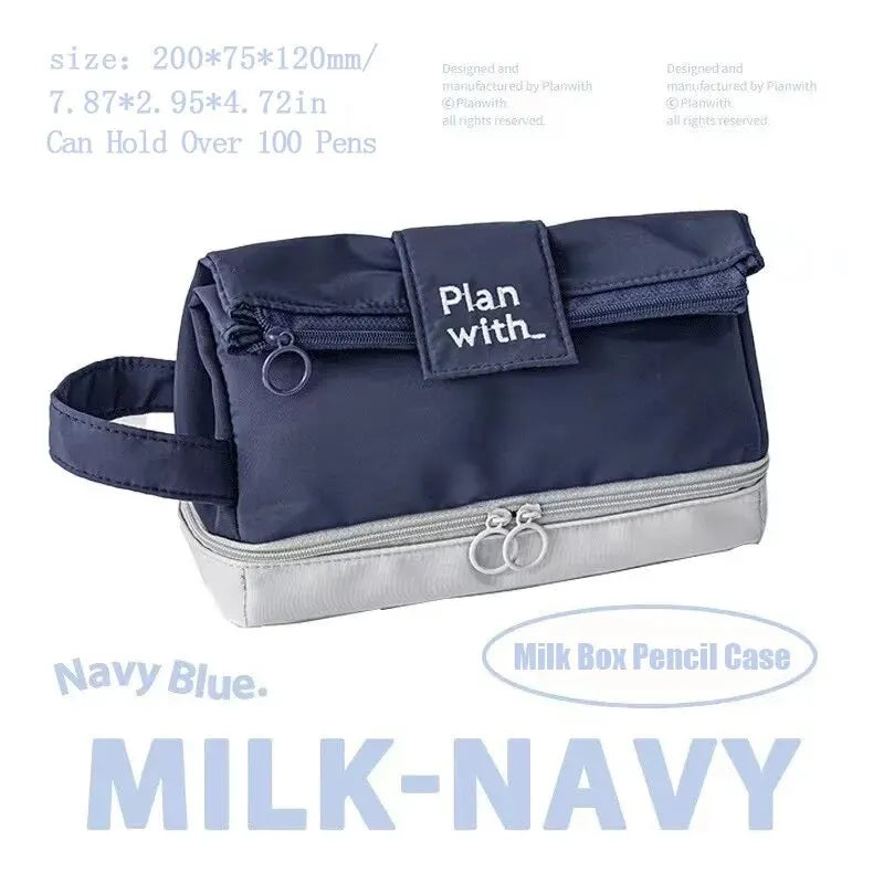 1PC Folding Double Layer Pen Bag Instagram Style Three Dimensional Creative Simple Large Capacity Stationery Box Student Pencil