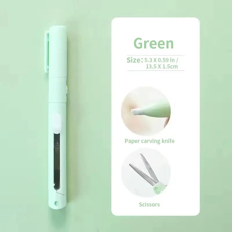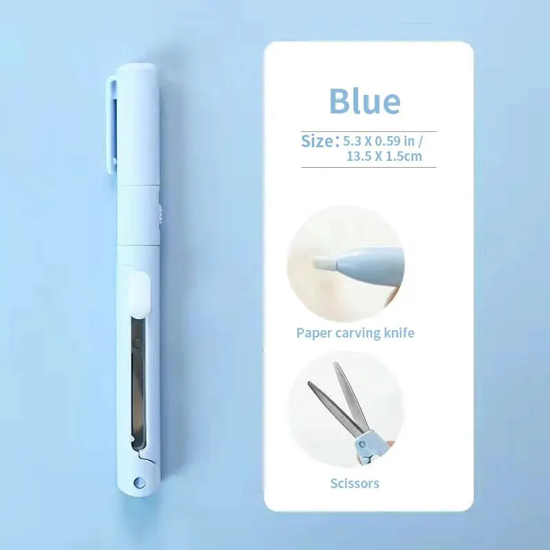 minus 1pc Mini Portable Scissors Paper Cutter Knife 2 In 1 Multifunctional Pocket Pen Shape Scrapbooking Carving Cutting Art Tools