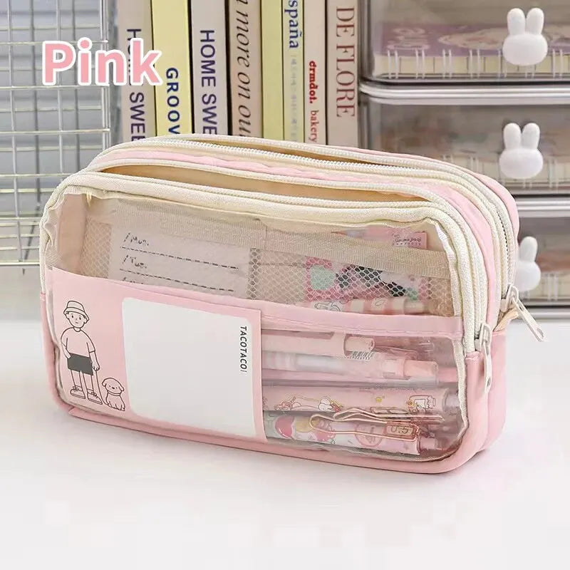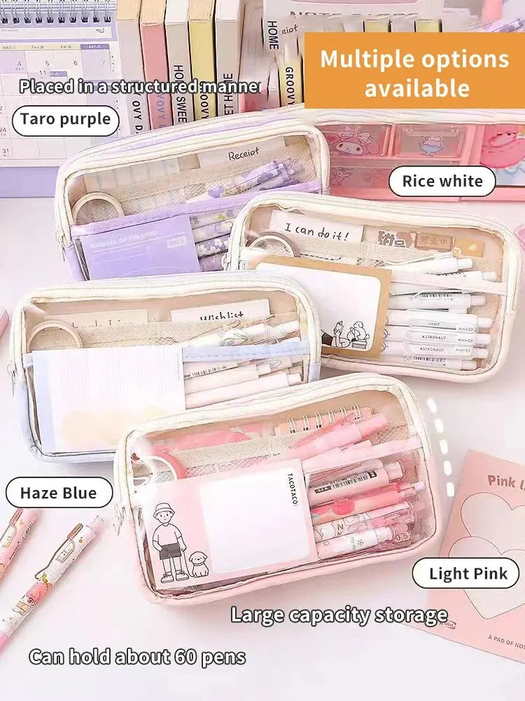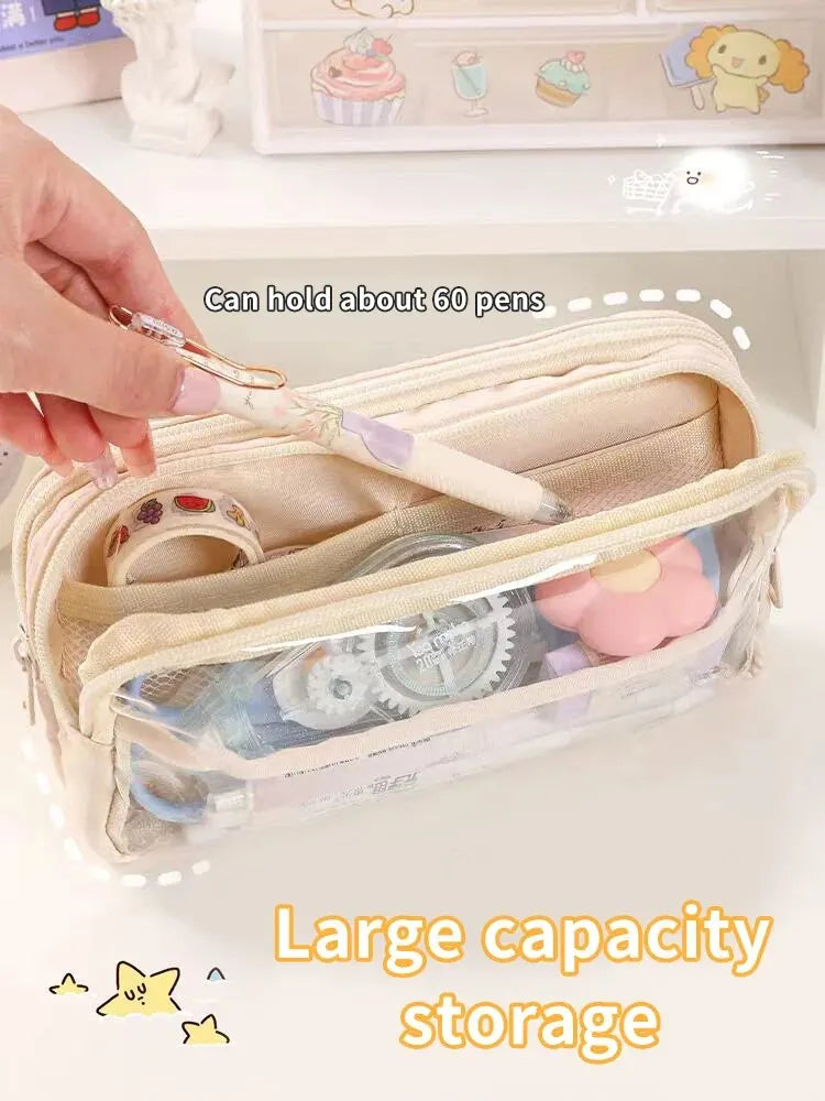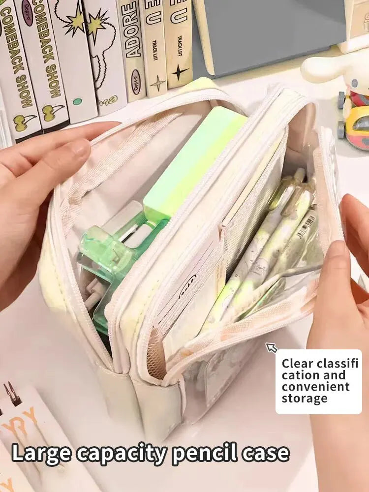 1PC StationeryBag Pencil Case Large Capacity Pencil Case Handheld Pencil Case Stationery Box Cosmetics Portable Gifts Suitable