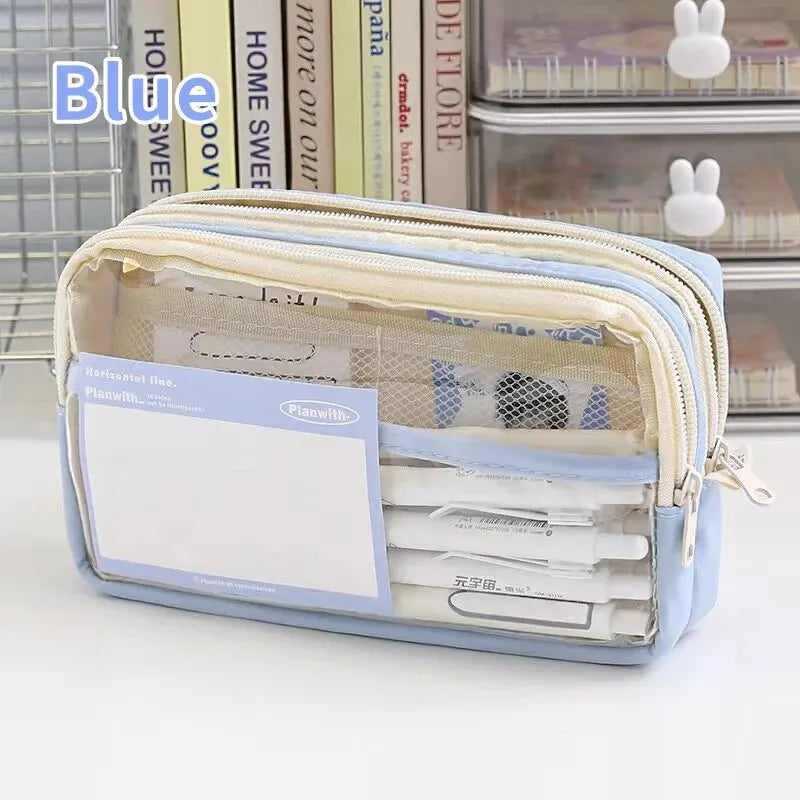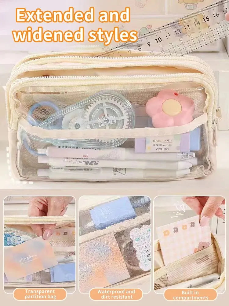 plus 1PC StationeryBag Pencil Case Large Capacity Pencil Case Handheld Pencil Case Stationery Box Cosmetics Portable Gifts Suitable