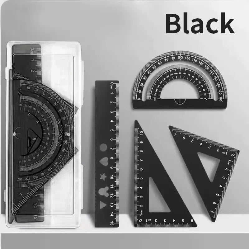 4pcs Metal Drafting Set With Storage Box Students Measure Ruler Set Multi-Function Set