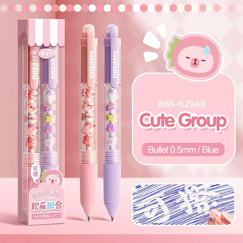 Press to Wipe pen Neutral Pen Ballpoint Pen Third Grade Easy to Wipe Student Cartoon Crystal Blue Neutral Pen Thermal Eraser